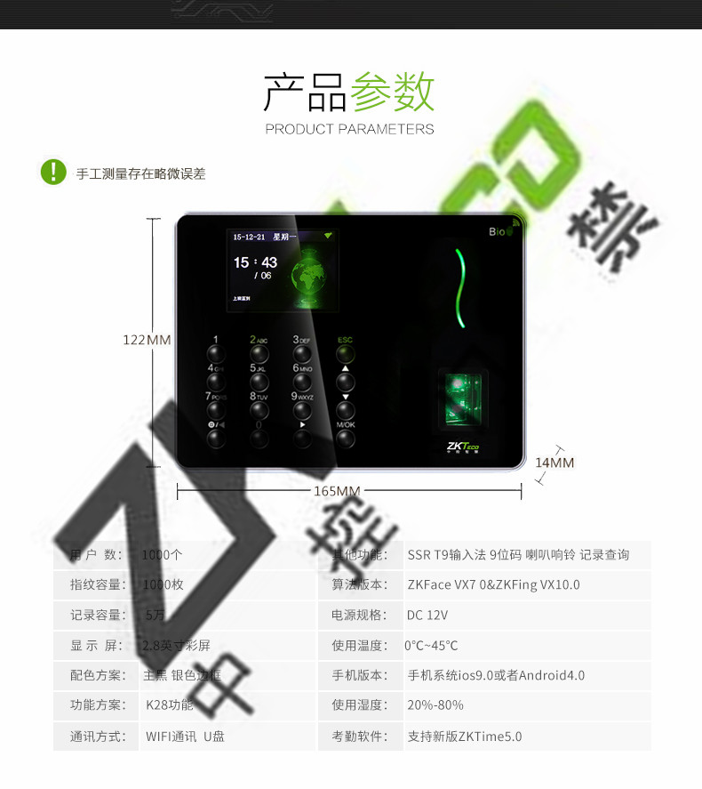 中控w6考勤機