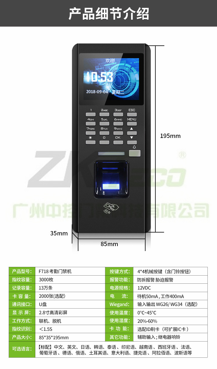 指紋考勤門禁一體機F718