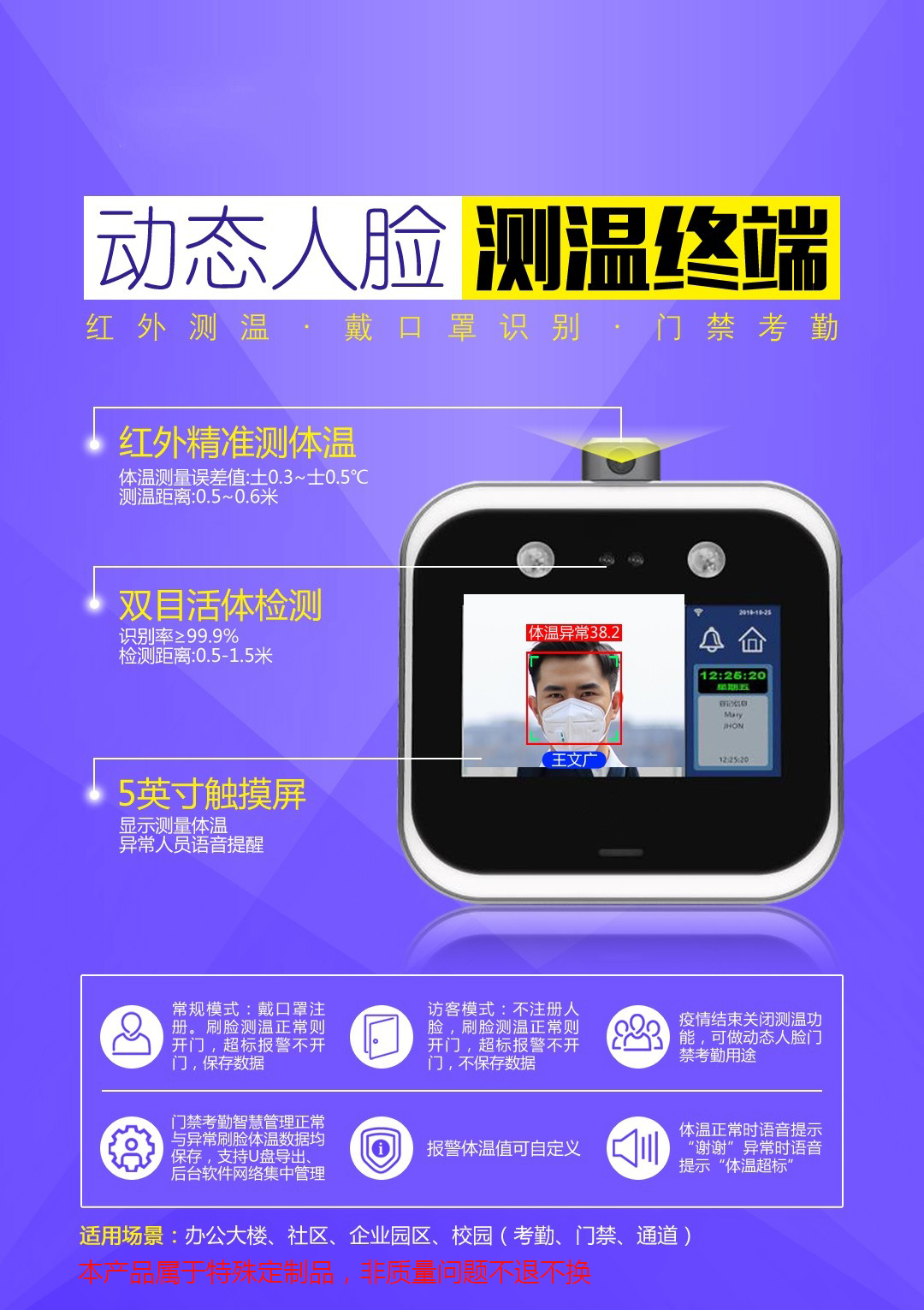 測體溫人臉識別門禁考勤機